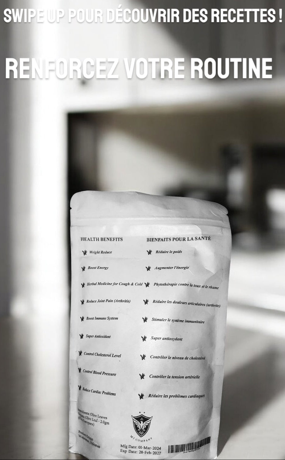 Infusion naturelle à base de feuilles d’olivier séchées et coupées, 100 % bio, donc pas d'effet secondaire .